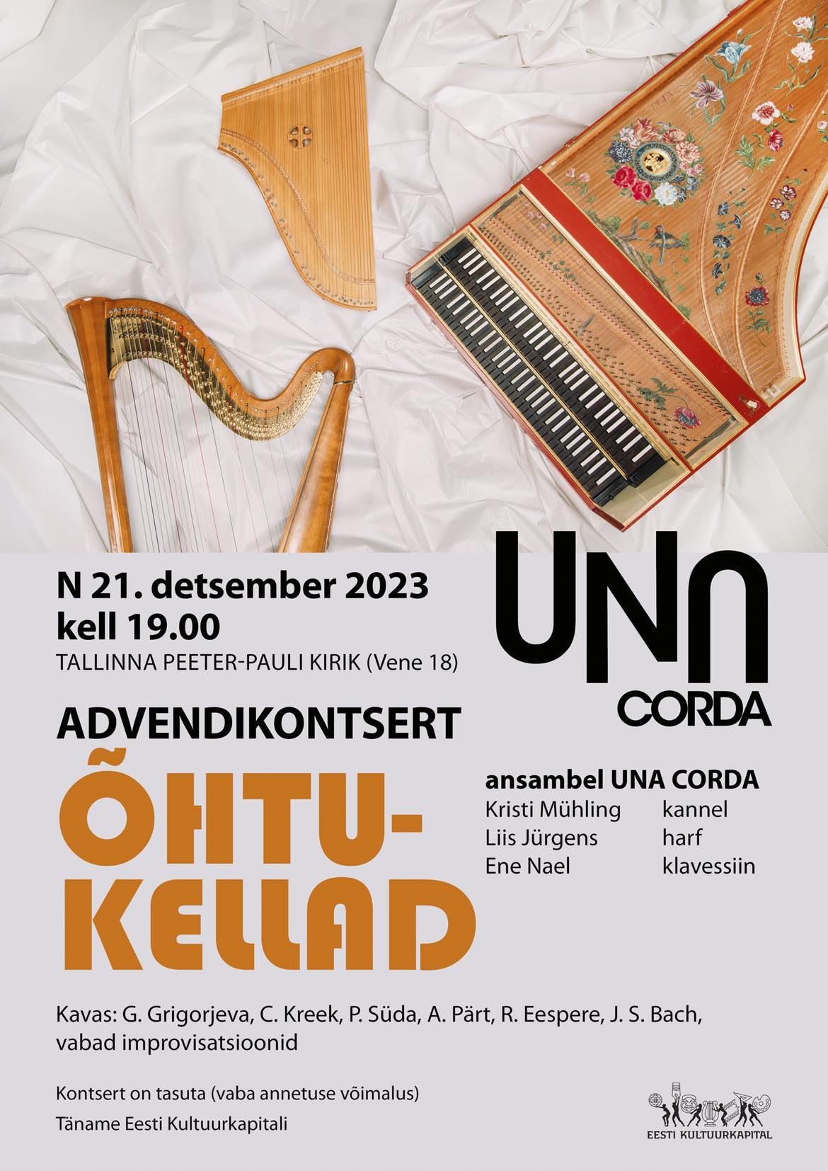 Neljapäeval 21. detsembril kell 19 esineb Tallinna Peeter- Pauli kirikus (Vene18) ansambel Una Corda koosseisus Liis Jürgens (harf), Kristi Mühling (kannel) ja Ene Nael (klavessiin).Kontserdil kuuleb peamiselt Eesti heliloojate jõuluaega sobivat muusikat, aga ka Johann Sebastian Bachi teoste seadeid ja ansambli vabu improvisatsioone. Una Cordale loodud originaalteostest kõlab Galina Grigorjeva „Evening Bells“ (2019) ja René Eespere „Tres sorores“ (2016), seadetest Cyrillus Kreegi „Õnnis on inimene“, Peeter Süda „Gigue à la Bach“ ja Arvo Pärdi „Aliinale“.