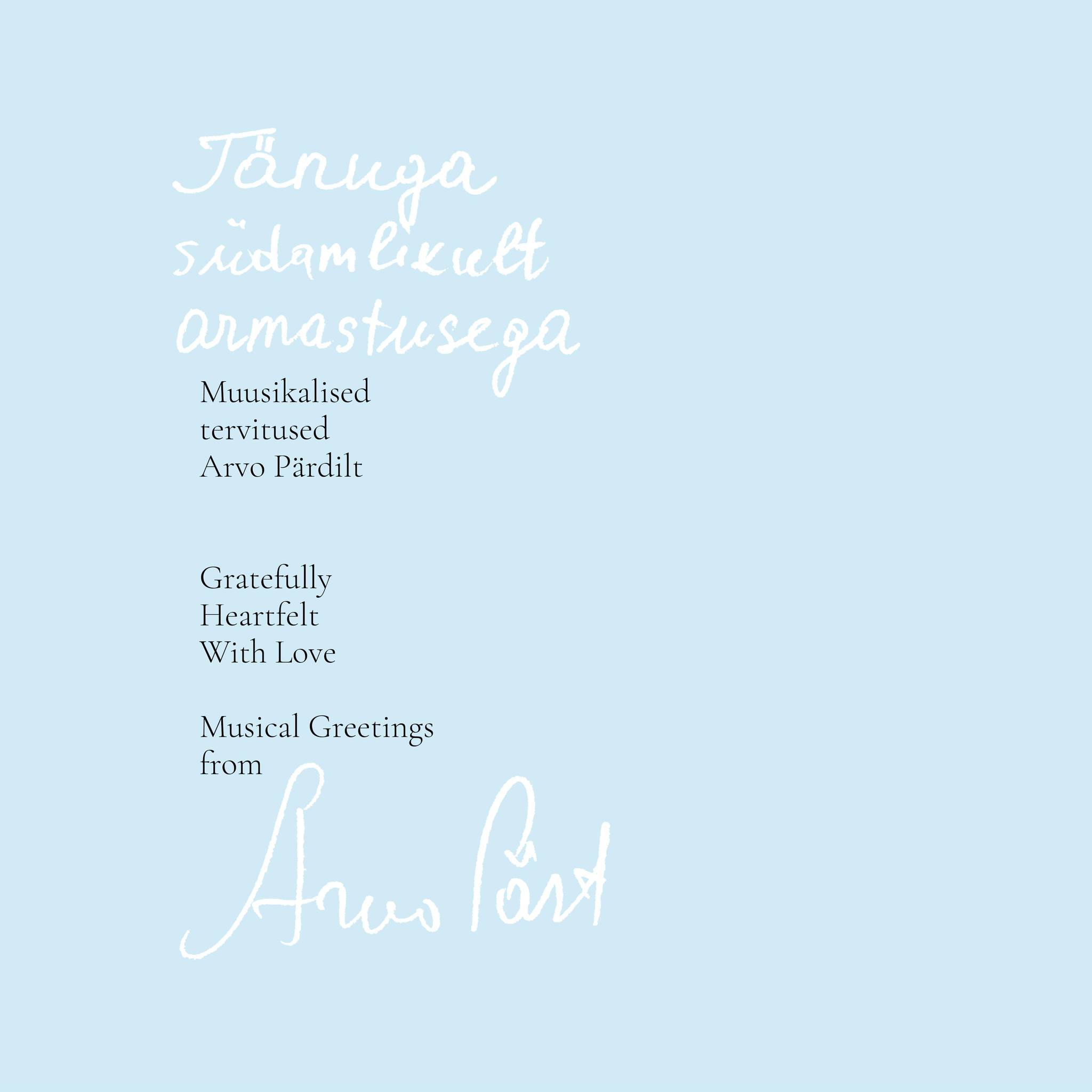 This bilingual Estonian–English book looks at a lesser-known side of Arvo Pärt’s creative work – the world of musical greetings. These short musical pieces were composed to congratulate, greet or thank friends, acquaintances and collaborators. The book brings together 78 musical greetings, many of which are visually striking and meaningful. Many of the greetings have also been specially recorded for this release.