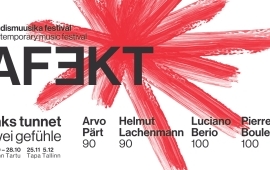 Soloists: Taavi Kerikmäe (piano), Talvi Hunt (piano), Tuuri Dede (mezzo-soprano). Ensemble U: & Ludensemble, conductor Kaspar Mänd. Programmed among others is "Four postcards for Pierre Boulez's 90th birthday" by Helena Tulve, Toivo Tulev, Andrus Kallastu, Tatjana Kozlova-Johannes