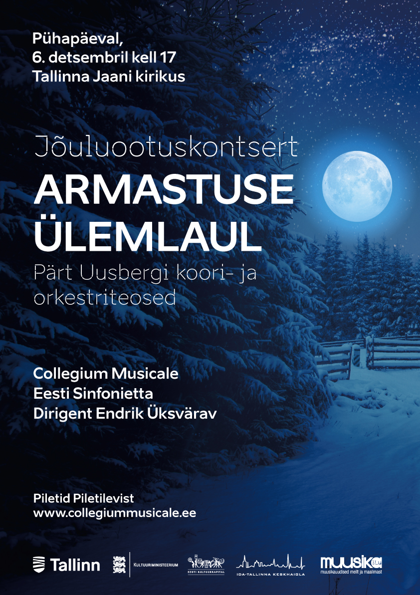 Teise advendi pühapäeval, 6. detsembril kell 17 toimub Tallinna Jaani kirikus jõuluootuskontsert „Armastuse ülemlaul“. Kontserdil kõlavad armastatud helilooja Pärt Uusbergi koori- ja orkestriteosed. Tegemist on muusikalise rännakuga läbi õdusa talveõhtu ootusega millestki ülevast ja imelisest – jõuluootusega!Kontserdil esitavad Pärt Uusbergi muusikat Eesti tippkammerkoor Collegium Musicale ja Eesti Sinfonietta. Dirigent on Endrik Üksvärav.