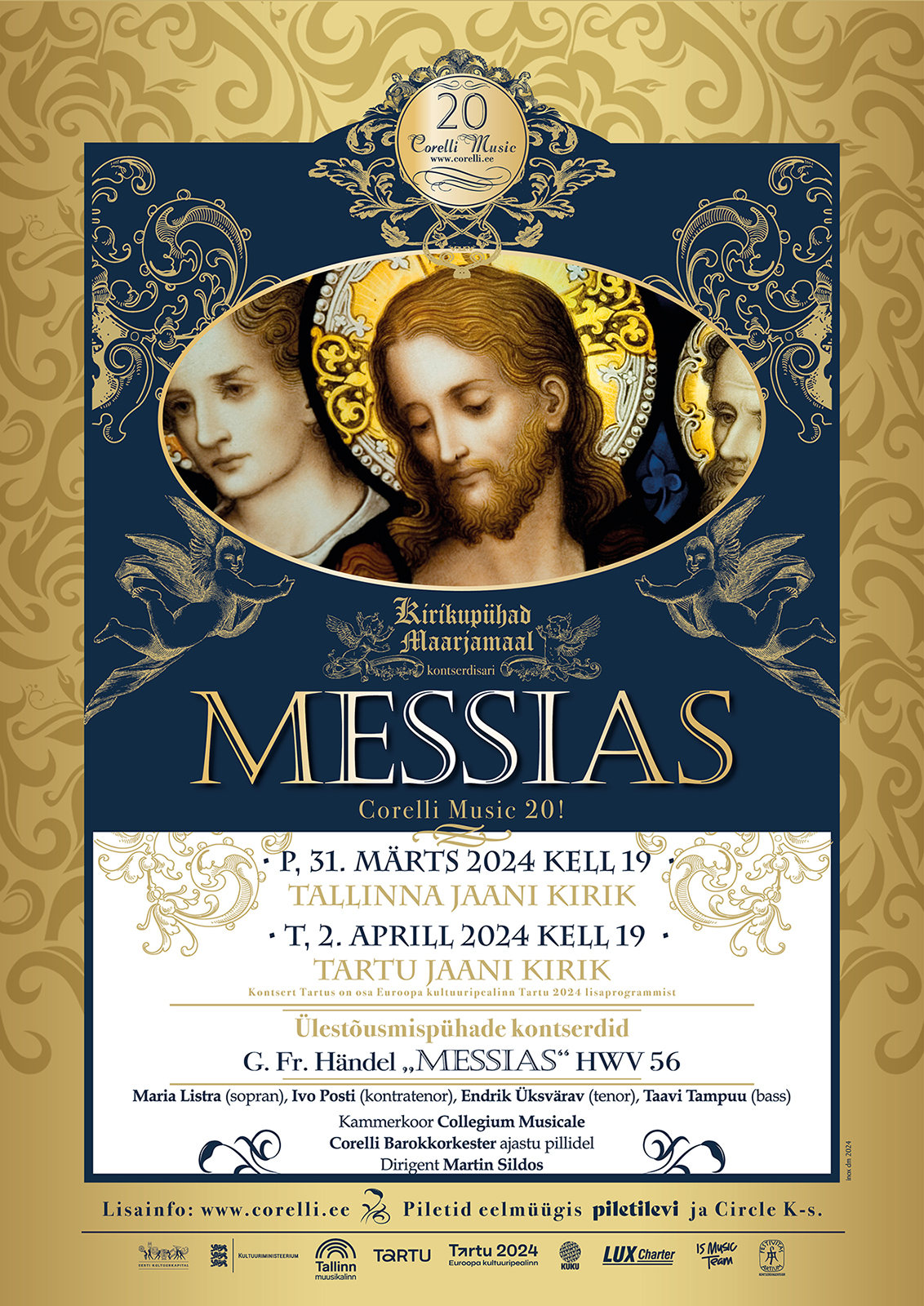 rillil kell 19 Tartu Jaani kirikus agentuuri 20. juubelisünnipäeva ning toob sarja „Kirikupühad Maarjamaal” raames publiku ette barokiajastu suurvormi Händeli „Messias“.Corelli Music rõõmustab taas publikut kontserdisarjaga „Kirikupühad Maarjamaal“, mis sai alguse juba kevadel 2006. Georg Friedrich Händeli oratooriumi „Messias“ esitavad Martin Sildose juhatusel Eesti tippsolistid Maria Listra (sopran), Ivo Posti (kontratenor), Endrik Üksvärav (tenor), Taavi Tampuu (bass), kammerkoor Collegium Musicale ja Corelli Barokkorkester ajastu pillidel. „Messiast“ mängitakse tihti ka jõuluajal, aga sisuliselt kuulub see võimas meistriteos siiski ülestõusmispühadesse.