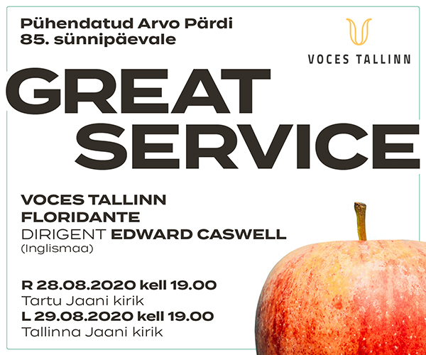 On 28 August in St John’s Church Tartu and 29 August in St. John’s Church Tallinn, the concerts „Great Service“ will be conducted by internationally renowned choral conductor Edward Caswell. The performances will be dedicated to Arvo Pärt’s 85th birthday and will be performed by Voces Tallinn and the ensemble Floridante.