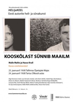 On January 23 and 24, Heli ja Keel (Sound and Language) concert series will continue with concerts dedicated this time to the oeuvre of composer Malle Maltis and writer Hasso Krull. The program of the concert entitled The Word Is Born of Accordance consists of works Res (2003), Wavescape with Eight Players (2013, premiere), The Rain Remains (2005, text: Hasso Krull), Kannel Patterns (2013, premiere), The Word Is Born of Accordance (2012, Estonian premiere), Dolce (2012), A Match (2012) and Counterflow (2011) by Maltis and poetry and prose by Krull.