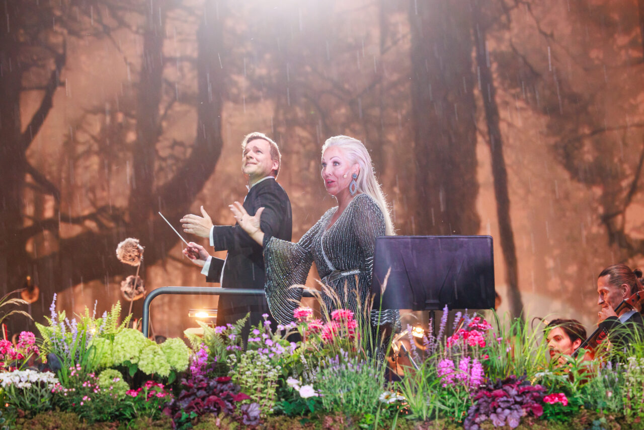 Solist Annely Peebo ja Vanemuise muusikajuht ja peadirigent Risto Joost sümfooniaorkestri suvekontserdil. Foto: Tarmo Haud